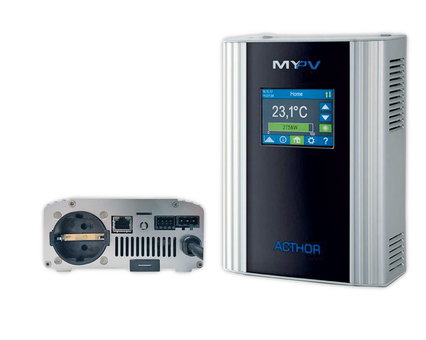 AC•THOR ist ein 0 – 3 kW stufenlos geregelter Photovoltaik Power-Manager für Warmwasser, elektrische Wärmequellen und optional Heizung.